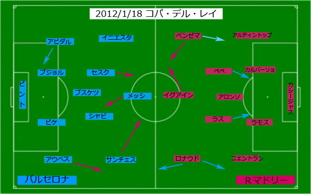 マドリーは中盤センターの三人を守備重視で人選し最初から守備的布陣で有ることを印象付けた。