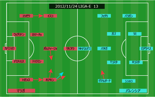 ではバレンシアの失点の原因は何が一番大きかったのか。それはやはりTコスタとガゴの2ボランチにあったのではないかと思う。このポジションの選手がボールを前に運べず、ボールを奪われてしまうと残るは最終ラインだけなので当然失点のリスクは増大する。それを何度もやられていては流石に流れは相手に行ってしまう。