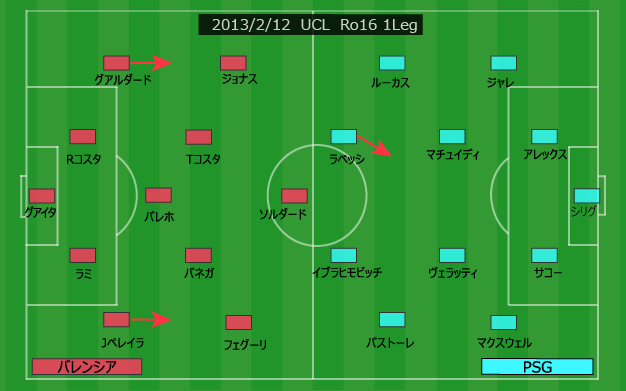 この試合はPSGの試合巧者ぶりが目立った試合だった。まずバレンシアの攻撃に対して自軍で引いて守り、バレンシアの選手の突破に対してボールを奪うと、パストーレやヴェラッティがキープ力とパス能力を生かし一旦落ち着かせる。