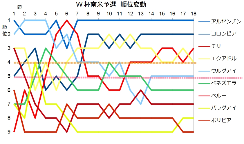 | コロンビア | 南米 2 | 4 | 予 | 予 | 予 | 32 |